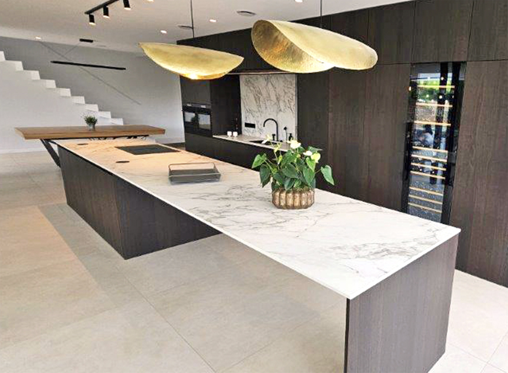Que vous optiez pour la noblesse du marbre, l’élégance du quartzite, la force du granit, la beauté de la pierre bleue, la robustesse du quartz composite ou la modernité de la céramique, nous façonnons ces matériaux en petites touches ou en total look.