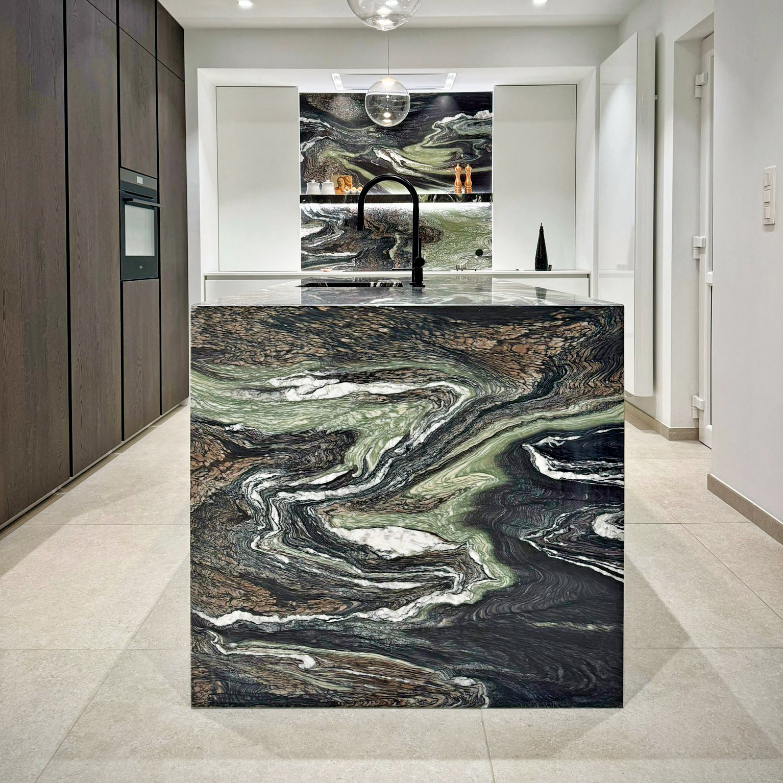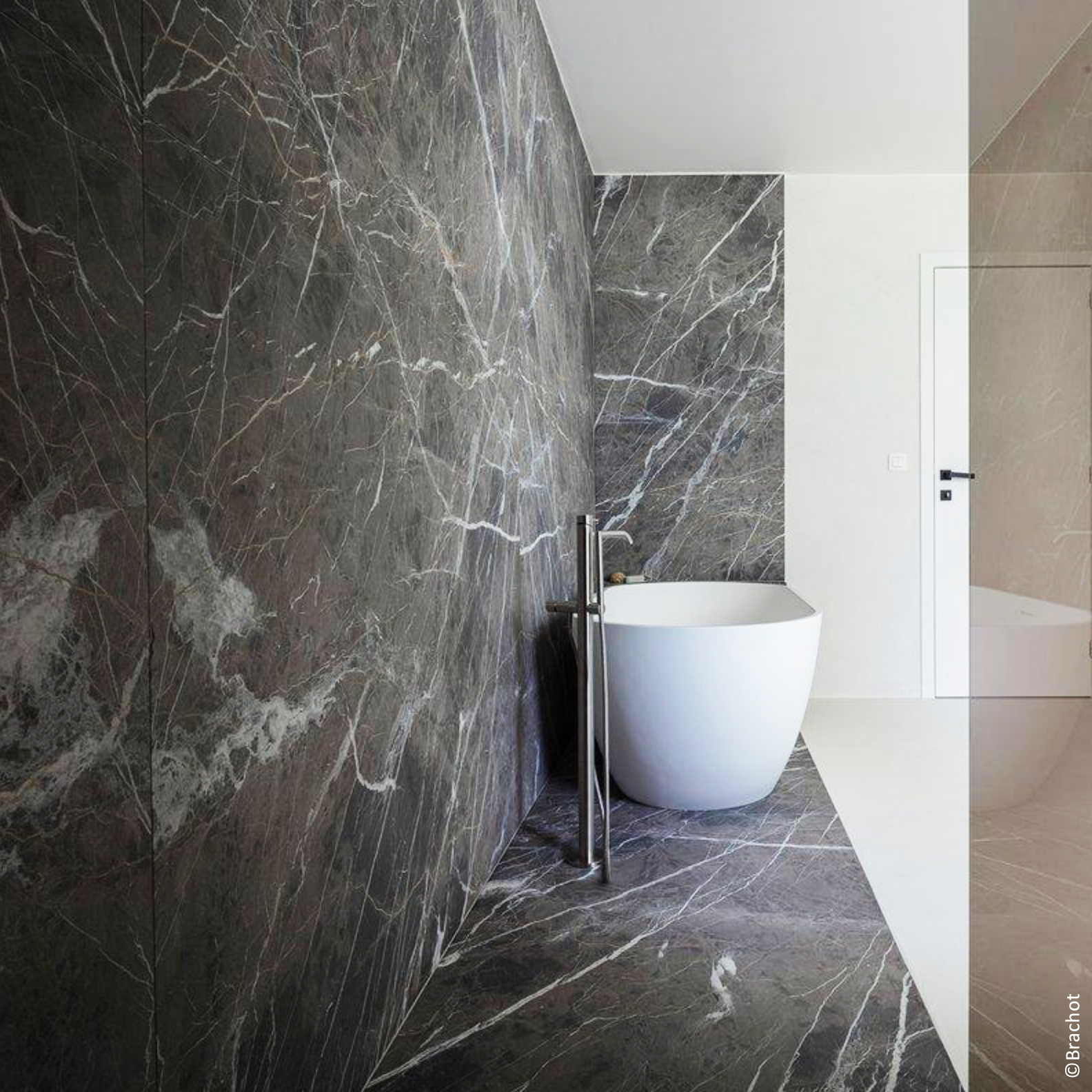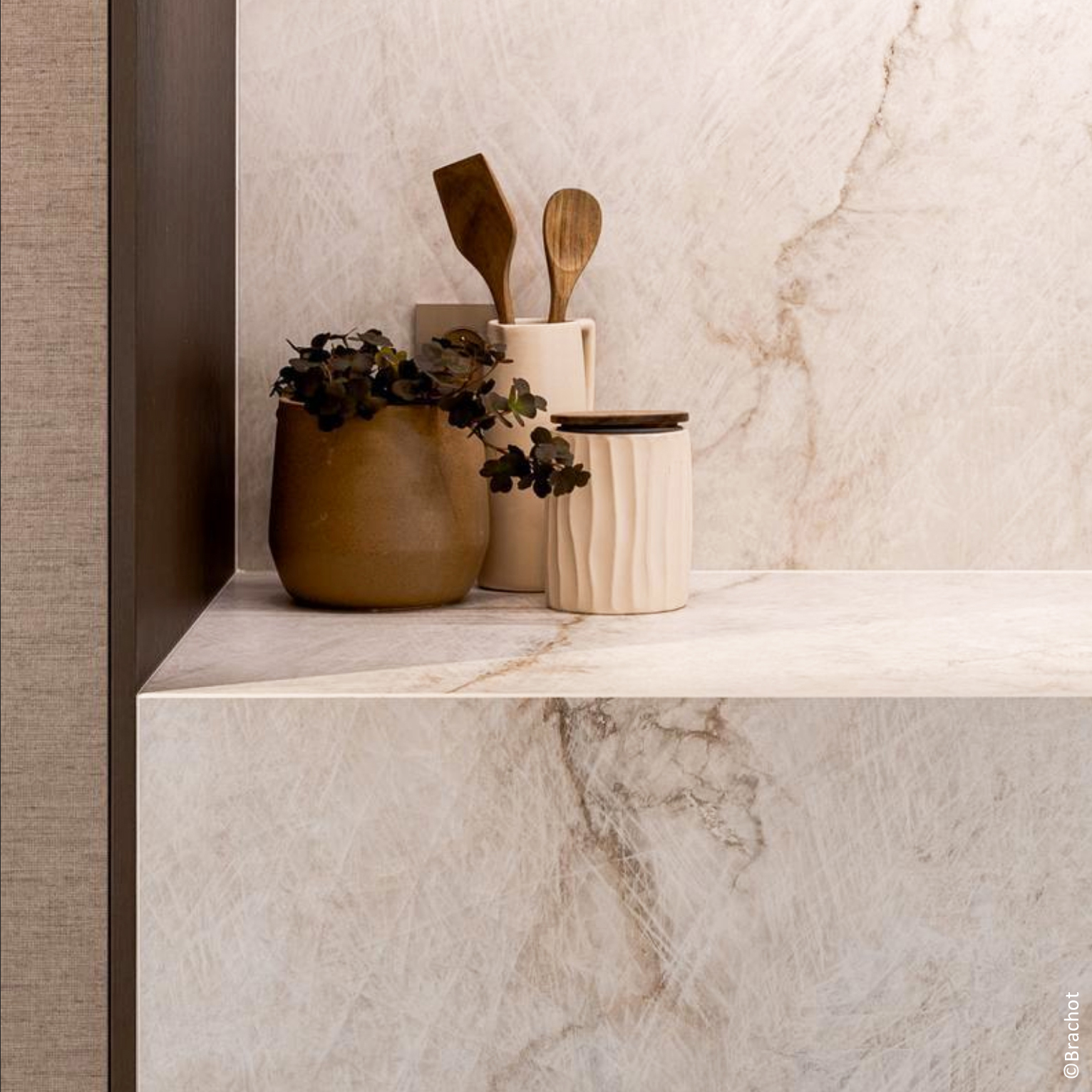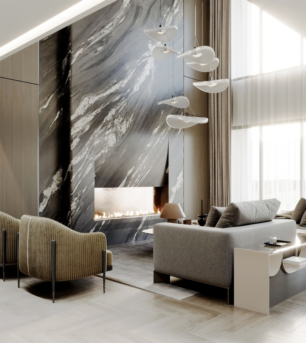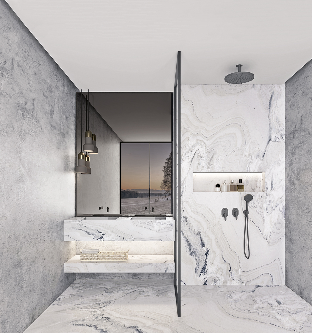Chaque matériau exprime sa propre identité visuelle. Les pierres naturelles offrent des décors uniques, sculptés par des millénaires de processus géologiques: qu’il s’agisse de l’entrelacs délicat des veines du marbre ou des fossiles ancrés dans la pierre bleue, chaque tranche est une œuvre d’art signée par la nature.