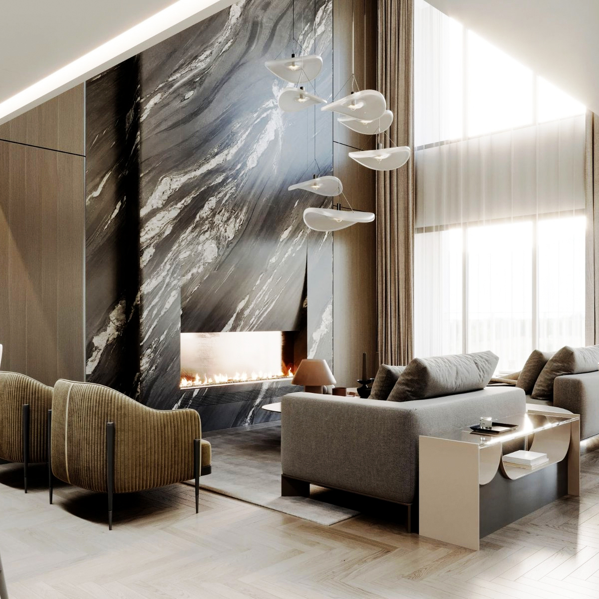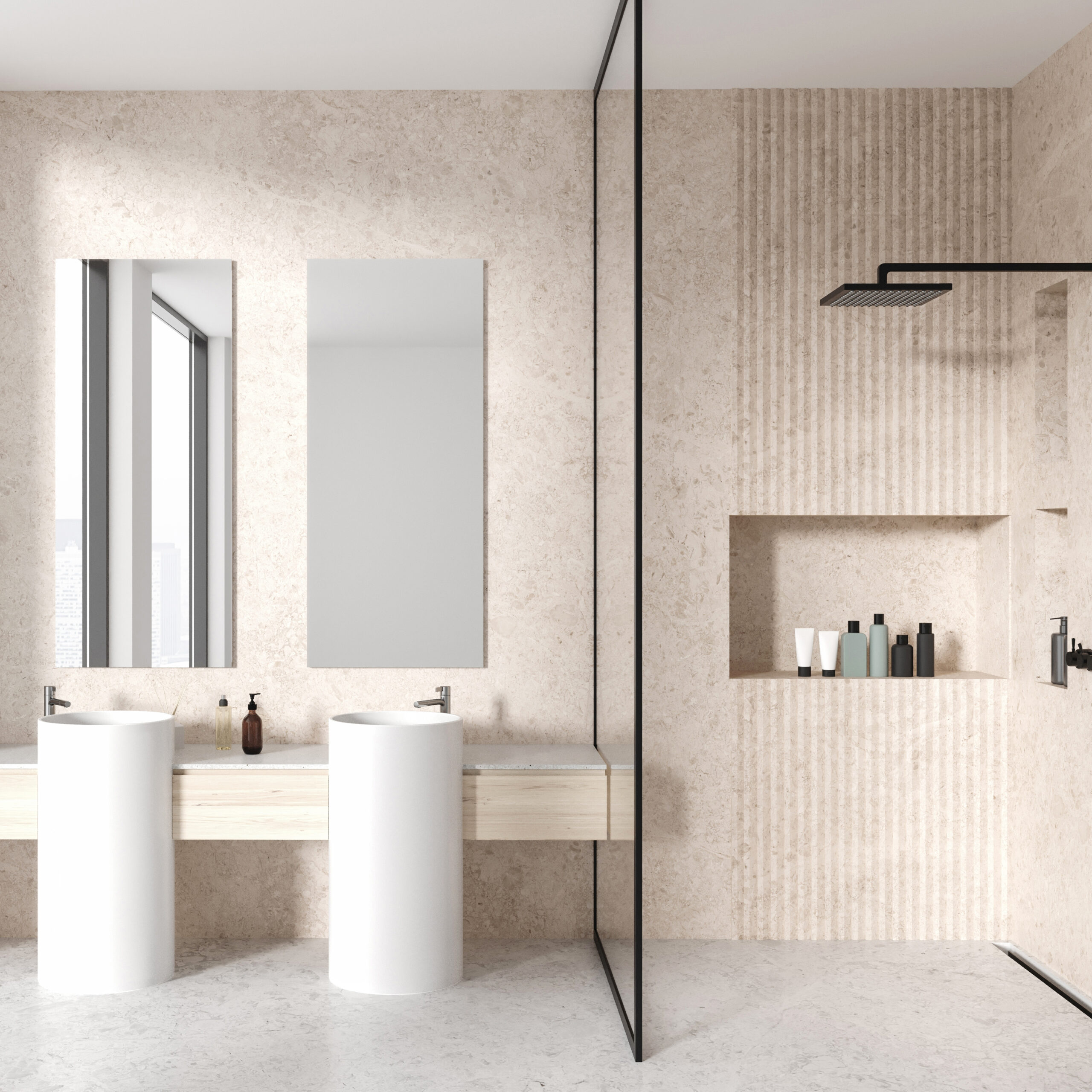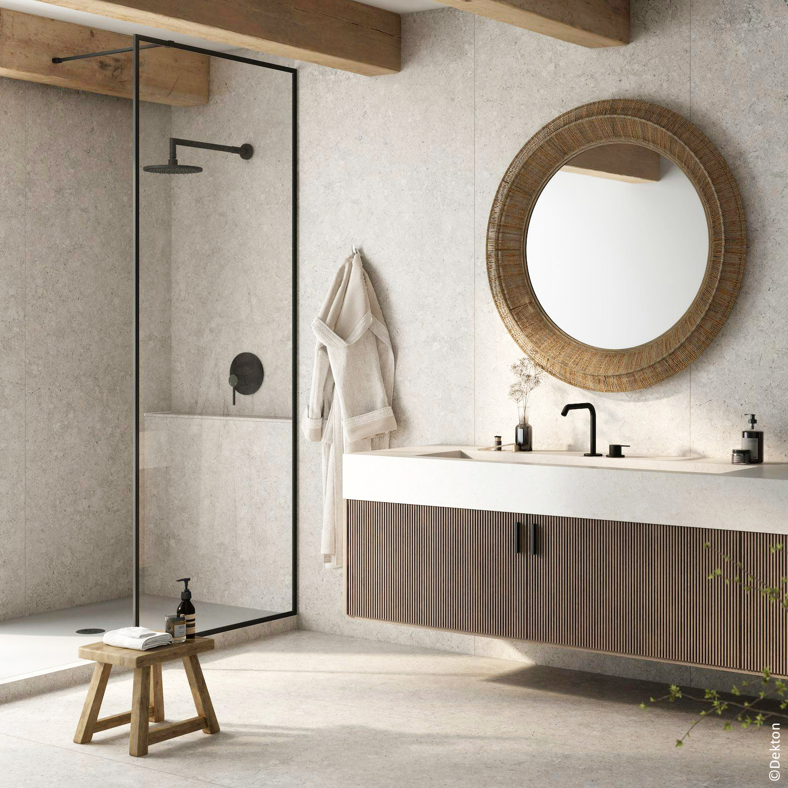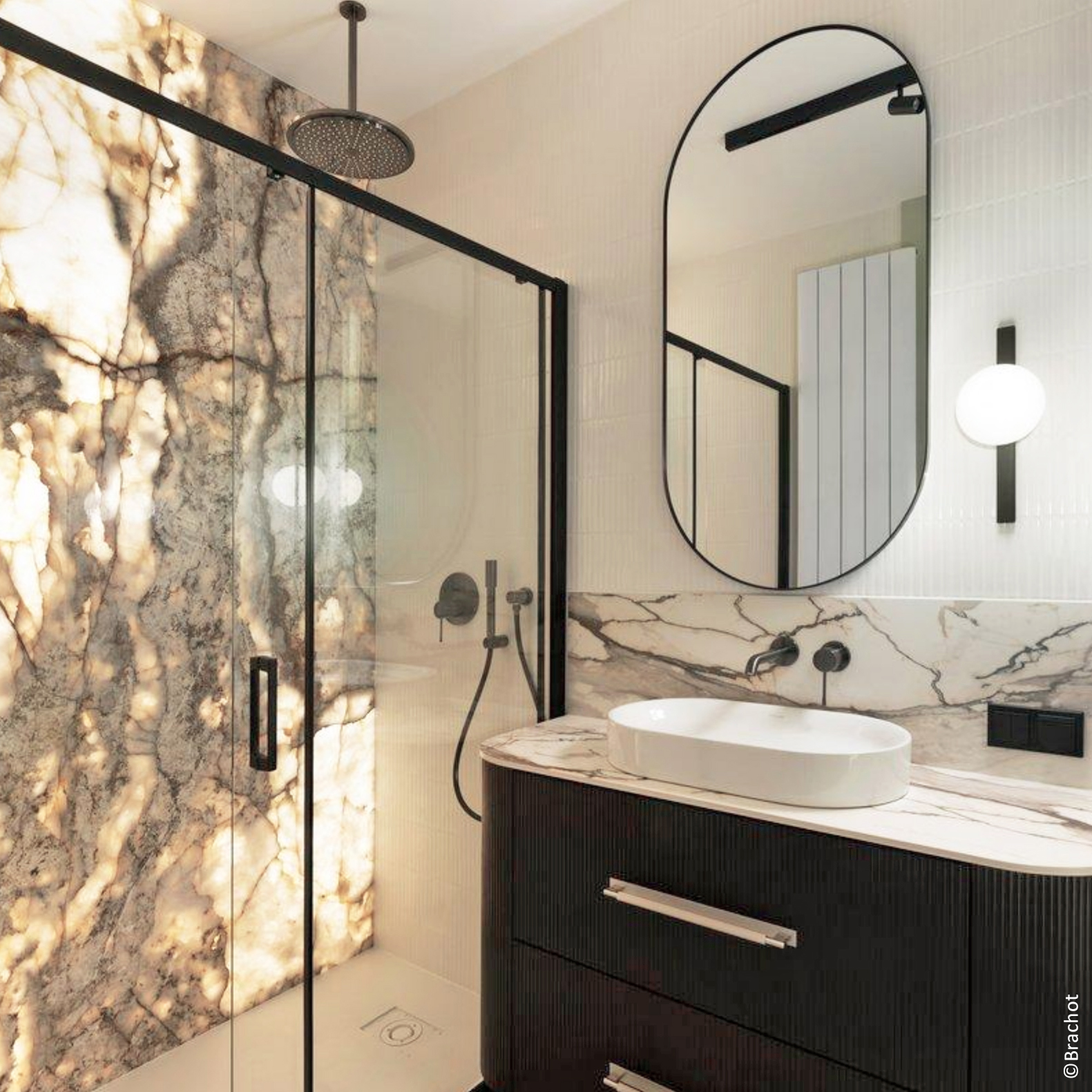 Chaque matériau exprime sa propre identité visuelle. Les pierres naturelles offrent des décors uniques, sculptés par des millénaires de processus géologiques: qu’il s’agisse de l’entrelacs délicat des veines du marbre ou des fossiles ancrés dans la pierre bleue, chaque tranche est une œuvre d’art signée par la nature.
