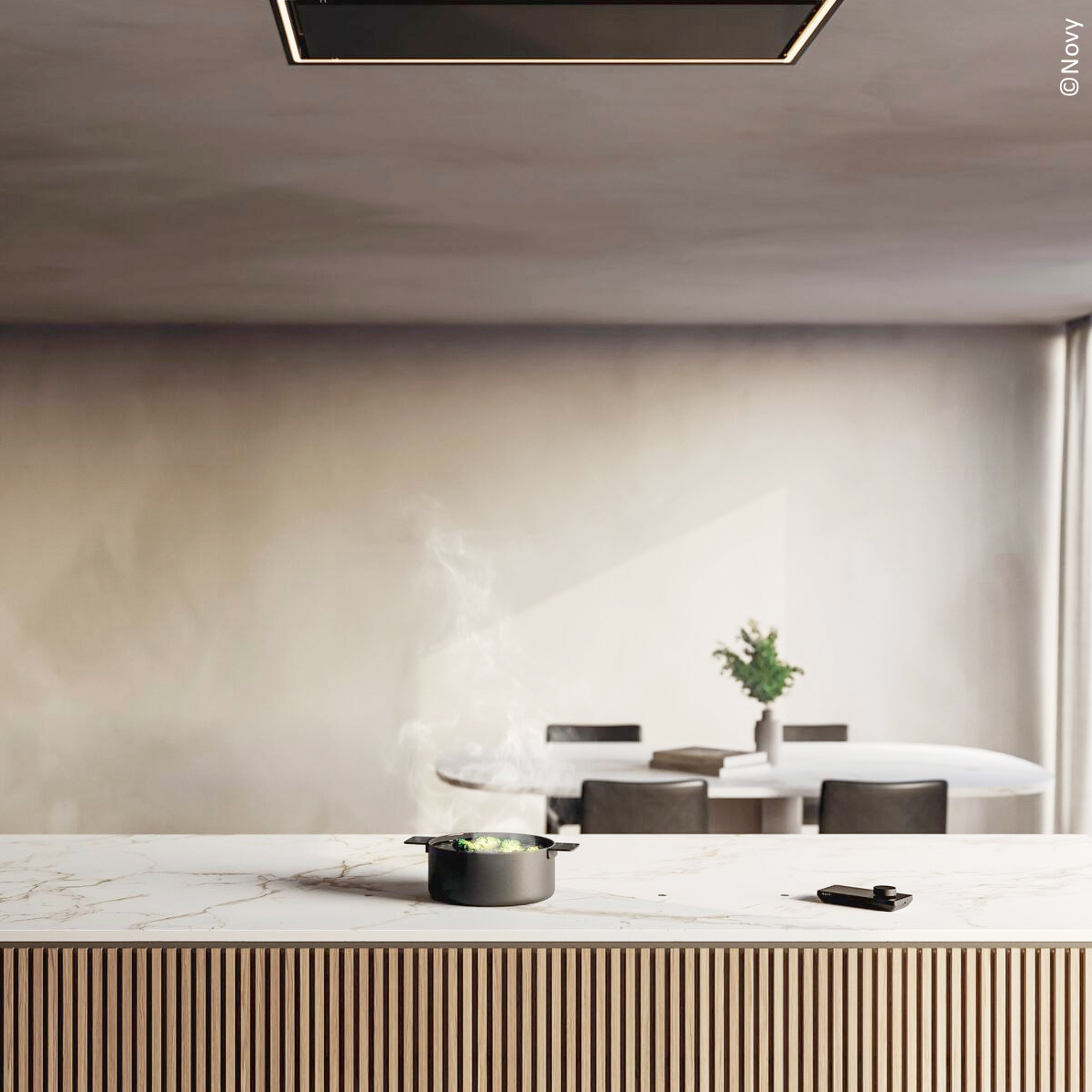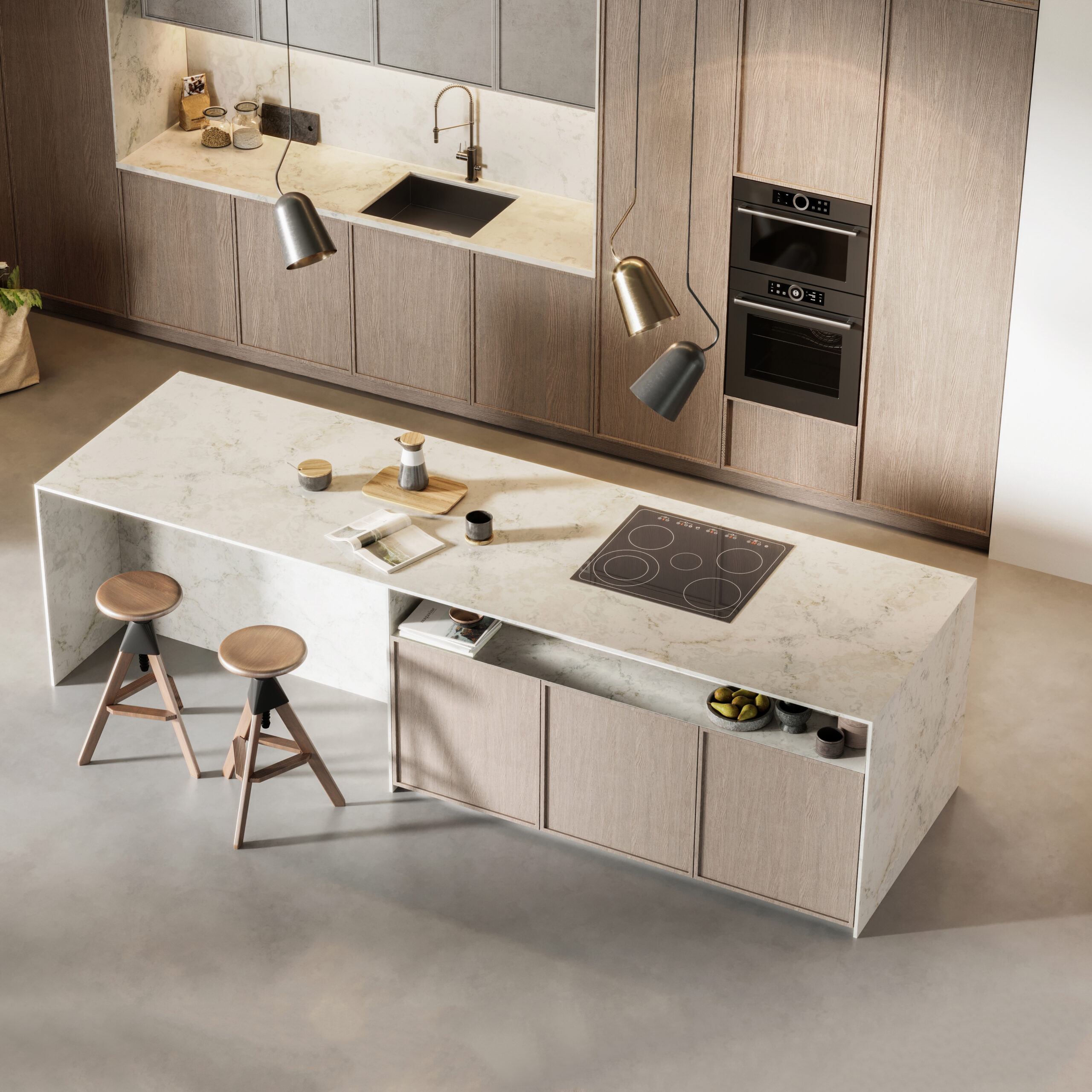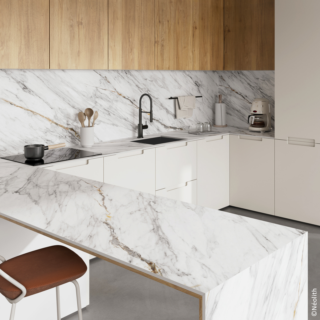 Cuisinez à même la céramique: l’élégance d’un plan de travail sans plaque de cuisson apparente.