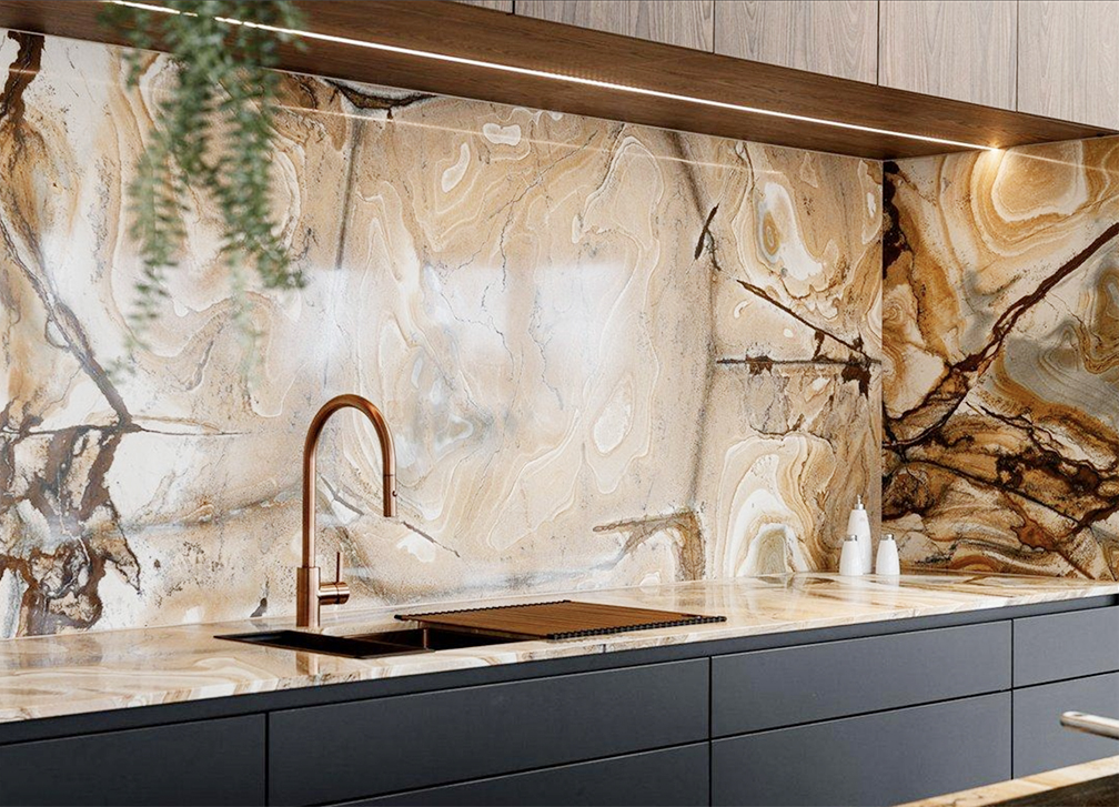 Là où les standards du secteur s’arrêtent souvent aux 3 ou 4 axes, notre débiteuse à 5 axes nous permet de réaliser des découpes complexes et des projets sophistiqués avec une flexibilité totale. Nous intégrons également la technologie Waterjet: un procédé industriel de haute précision, à la fois extrêmement précise et éco-durable.